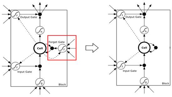 The forget gate in LSTM plays an important role since it automatically removes the useless parts when information is propagated. It is helpful in tasks where there are multiple noisy features for decisions, such as sentiment analysis. However, in text summarization, LSTM should have the ability to memorize the topics from the first sentence of the document to the end without any omission. Removing the forget gate seems to be a reasonable way to address the issue. Therefore, we just simply removed the forget gate from the LSTM unit (Figure 3) and expected less information loss. The equations for LSTM then become