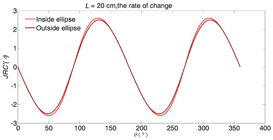 The changing rate of JRC’(θ) is shown in Figure 2. It is obvious that the changing curves of the inside and outside ellipse envelopes present periodicity and the changing rates fall into the range between two negative sine functions.