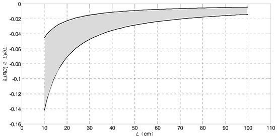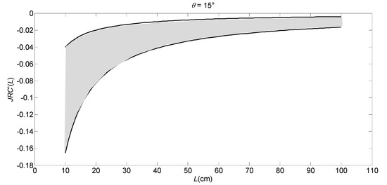 In Figure 5, the shaded part is the changing rate range of JRC’(L). It is monotonously increasing on the increase of L. Clearly, the scale effect phenomenon is more obvious in smaller sizes.