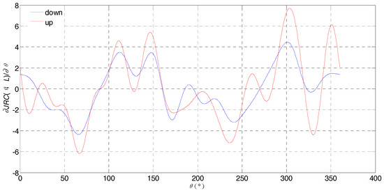 In order to reflect the changing rate of JRC(θ) in any orientation; here, we carried on the derivative operation of Equation (6) and obtain the following derivative Equation (7) so as to analyze the variation situations of anisotropy: