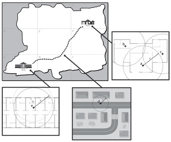 - Ekman, F.; Keränen, A.; Karvo, J.; Ott, J. Working day movement model. In Proceedings of the 1st ACM SIGMOBILE Workshop on Mobility Models, Hong Kong, China, 26–30 May 2008; pp. 33–40. [Google Scholar]
