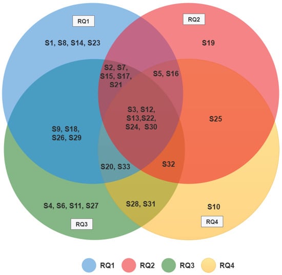 Figure 3 conveys the selected studies and the respective research questions they focus on. The figure conveys that 23 studies addressed issues related to
