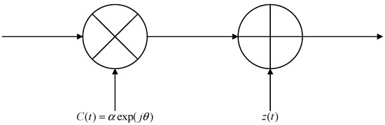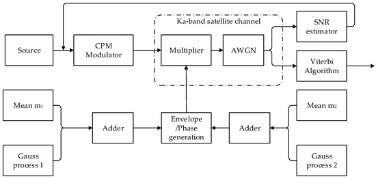 The Ka-band satellite channel can be simulated by a multiplicative interference vector and from Section 2. The schematic of the system can be established as shown in Figure 2.