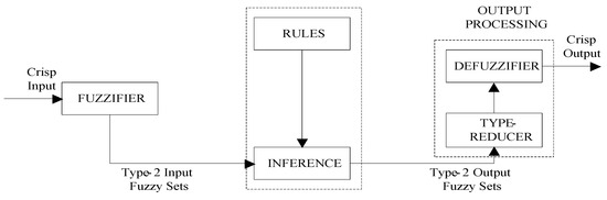 The general structure of IT2-FM is shown in Figure 3. Unlike the conventional fuzzy system, the output of the IT2-FM is an IT2-FS, which needs to be made into the type-1 counterpart by the type-reduction process.