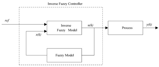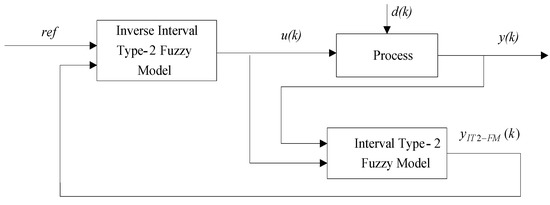 Since the IT2-FM has a stronger ability to deal with a dynamic process compared with T1-FM, the control performance of the inverse controller based on IT2-FM is superior to the corresponding type-1 counterpart. In Section 3, it has been verified that the approach structure of the IT2-FM is valid, i.e., y(k) = ref. Thus, if the IT2-FM approaches the process exactly, the process output would converge to the reference value. The structure of proposed inverse controller based on IT2-FM is shown in Figure 8, which provides an effective control performance [4,17,37].