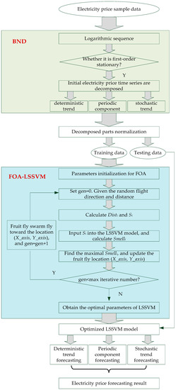 The procedure of the proposed BND-FOA-LSSVM model for electricity price forecasting is depicted in Figure 1.
