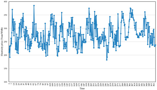 Generally speaking, the electricity price will be influenced by several factors, such as power load demand, transmission congestion, economic development, and generator available capacity [3]. The electricity price time series hold the characteristics of volatility and randomness, which make accurate electricity price forecasting hard work [4,5]. In the past years, many researchers have made extensive efforts to develop the electricity price forecasting models and algorithms. There are mainly two kinds of forecasting methods for electricity price, which are conventional time-series statistical method and the emerging artificial intelligent method. For the conventional time-series statistical method, it holds the assumption that the electricity price has linear relationship with its influencing factors. This kind of forecasting technique mainly includes the auto-regressive integrated moving average (ARIMA) [6,7,8] method and generalized autoregressive conditional heteroscedasticity (GARCH) [9,10,11]. However, in fact, the relationships between electricity price and its influencing factors are not linear. So, the electricity price forecasting performance is unsatisfactory, and the forecasting accuracy needs to be improved for this kind of forecasting method. Under this background, a new electricity price forecasting technique, namely, the artificial intelligent method, was developed. For artificial intelligent-based electricity price forecasting method, there is no longer the assumption of linear relationships between electricity price and its influencing factors, which can effectively cover the shortages of conventional time-series statistical method. This kind of forecasting technique mainly includes artificial neural networks [12,13], fuzzy neural networks [14], extreme learning machines [15,16], and support vector machines [17,18]. However, there is also weakness for artificial intelligent forecasting method, namely the model parameters need to be set first, such as the kernel parameters of support vector machines and neuron number of neural networks. This is really difficult for electricity price forecasting handlers. To solve this issue, an intelligent optimization algorithm is usually used to automatically determine the parameters of artificial intelligent forecasting models, such as particle swam optimization (PSO) [19,20] and genetic algorithm (GA) [21,22].