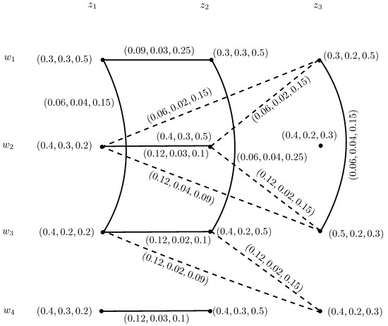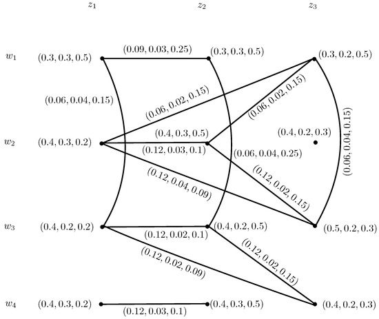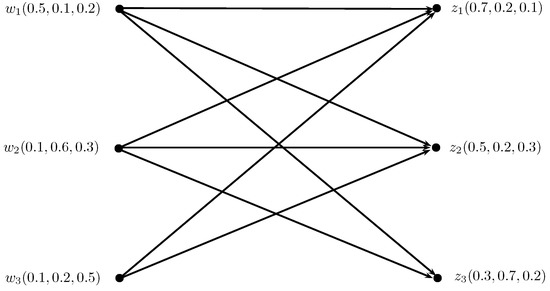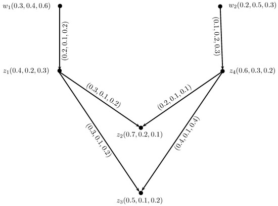 there exists a directed intuitionistic neutrosophic path of length m from w to z, , , , , and , are defined by , , is an edge of , , , is an edge of and , , is an edge of , respectively.