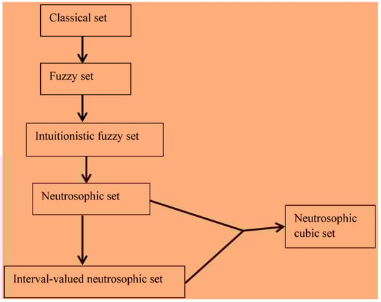 A conceptual model of the evolution of the neutrosophic cubic set is shown in Figure 1.