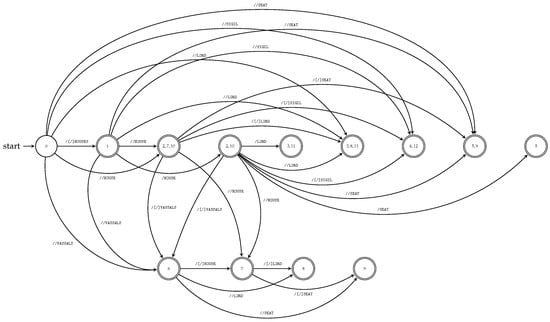 Figure 4 shows transition diagrams of the deterministic subsequence automata constructed by Algorithm 3 for all string paths contained in