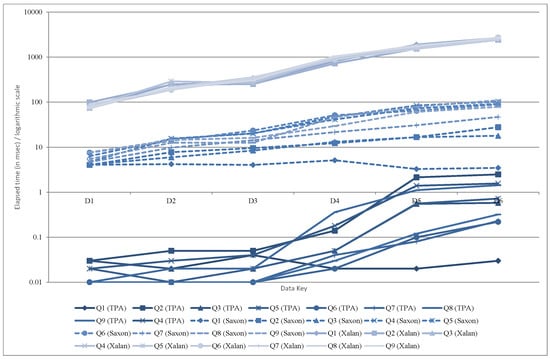 TSPSA efficiently supports the evaluation of all queries of an XML document D. The runtime for a query of length m clearly becomes and does not depend on the size of the document D. Again, considering also the answering phase, the whole input query Q is evaluated in time , where k is the number of nodes in the XML document D satisfying the query Q. In practice the number of such nodes is expected to be much smaller than the size of the XML document.