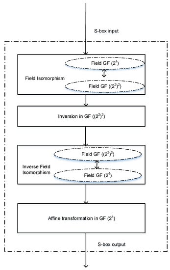 - Wong, M.M.; Wong, M.L.D.; Nandi, A.K.; Hijazin, I. Composite field GF (((22)2)2) Advanced Encryption Standard (AES) S-box with algebraic normal form representation in the subfield inversion. IET Circuits Dev. Syst. 2011, 5, 471–476. [Google Scholar] [CrossRef]