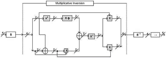 - Multiplicative inversion in the composite field using the Euclidean theorem.