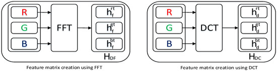 - Case3a: DFT coefficients have been utilized as an input for the classifier model, named CNN-DF. The feature matrix for each of the images is represented as .