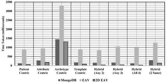 - Adaptability to Other Domains: In this paper, we highlight the use of 2D EAV specifically for EHRs; however, an example process of creating an archetype for a subject schedule and for hotels is discussed in [73]. Once the archetype system is ready, 2D EAV can be easily adopted for the underlying domain by simply renaming the ‘patient_id’ as ‘entity_id’. All other semantics of 2D EAV will remain unchanged for the desired domain. We have mainly focused on standardized EHRs due to the availability of archetypes for the healthcare domain, and the need for generic storage for EHRs.