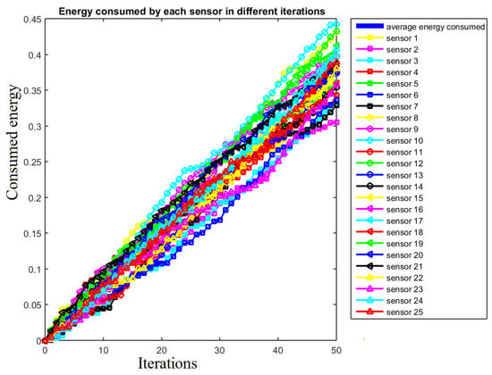 Energy consumed by each sensor for 50 iterations.