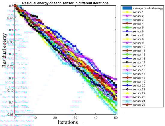 Residual energy of each sensor for 50 iterations.