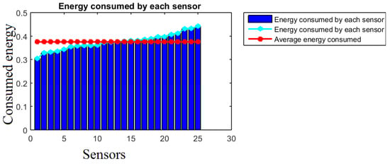 In Figure 7, the energy consumed by each sensor increases almost equitably for all sensors.