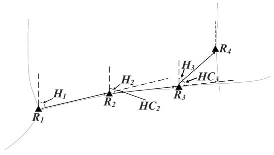 Suppose there is a trajectory of points }, including the source-destination pair and sample points. The heading directions of are , as shown in Figure 4. The threshold of the heading change is , and the heading change of is . The heading change rate is defined as follows: