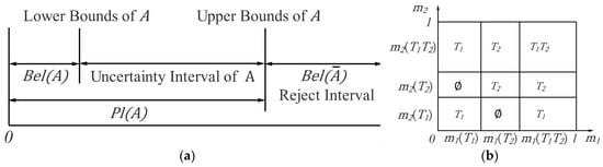 (a) The relationship of the belief function and the plausibility function. (b) The synthesis of and based on Dempster’s combinational rule.