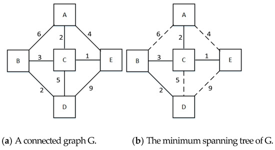 where ST is a set of spanning trees of G. In Figure 5b, we generate a minimum spanning tree from graph of Figure 5a.