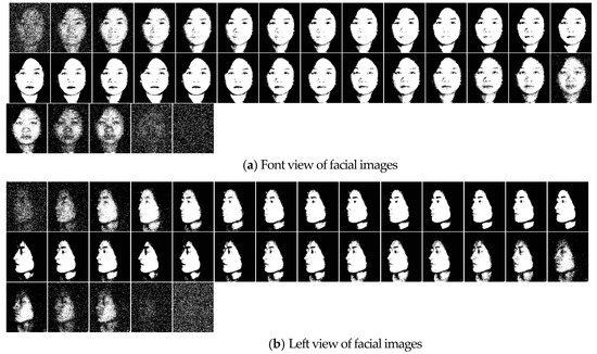 Figure 8a,b present basic clustering of facial images of front and left views, respectively. We can observe partial basic clustering with little effective feature information in Figure 8a, which is consistent with the band selection results of low-SNR bands. We can also find that specific local features stand out on distinct bands, while the bands with all of the local features are severely affected by noise (such as the last third basic clustering of Figure 8b). Hence, it is necessary to integrate discriminative basic clustering to get a robust result.