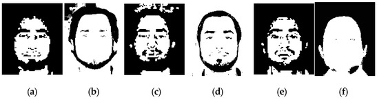 Finally, the performance of the proposed algorithm on PolyU-HSFD is compared with the previously mentioned standard FCM, spatial FCM, FRFCM and basic clustering. In Figure 10a (front facial image), the standard FCM clustering loses numerous features, because spectral reflectance of the face is not a reliable biometric, as spectral reflectance will change slightly due to the external environment [31]. Figure 10b illustrates spatial FCM clustering that performs better than the standard FCM algorithm as it makes full use of the spatial and spectral information, as expressed by Equation (7). This is achieved by adding the spatial function to the membership function as expressed by Equation (8). Figure 10c illustrates the performance of the proposed algorithm, in which almost all local features are obvious. Figure 10d also indicates a good result using a fast and robust FCM (FRFCM) algorithm.