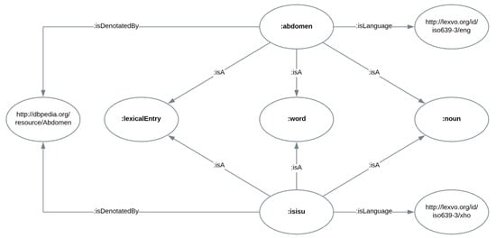 Because both lexical entries share the same denotation, equivalence between Abdomen and Isisu can be inferred. These short statements are visualised in Figure 2.