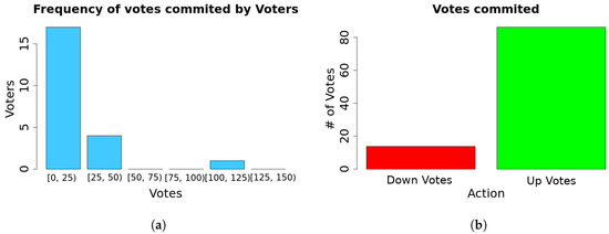 Voting Process Overview. (a) Frequency distribution of votes per user; (b) Domain experts found that 13% of the links presented to them where wrong.