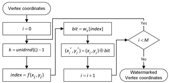 - Ohbuchi, R.; Ueda, H.; Endoh, S. Robust watermarking of vector digital maps. In Proceedings of the 2002 IEEE International Conference on Multimedia and Expo, Lausanne, Switzerland, 26–29 August 2002; IEEE: New York, NY, USA, 2002. [Google Scholar]