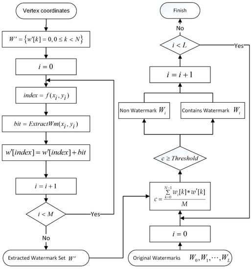 - Wang, N. Reversible watermarking for 2D vector maps based on normalized vertices. Multimed. Tools Appl. 2016, 76, 20935–20953. [Google Scholar] [CrossRef]