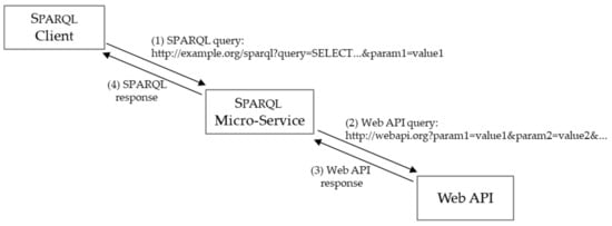 Also, the prototype requires that the set of arguments of a micro-service be passed as parameters on the HTTP query string (as exemplified in Section 3.1). Thus, while the URL of a regular SPARQL endpoint is of the form “http://example.org/sparql”, in our implementation a SPARQL micro-service is invoked with additional parameters, like “http://example.org/sparql?param1=value1”. Alternatives to this choice are discussed in Section 4.4.