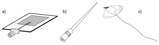 (a) Planar antenna [4]; (b) whip-monopole antenna [4]; (c) dragged-wire Antenna [4].