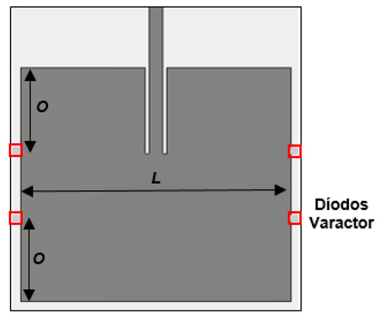 Before analysis to the system of equations, it is necessary to realize that , that is, corresponds to the value of the effective capacity of the diodes in the circuit. This value is directly dependent on the positioning of the diodes in the patch, as represented in the following equation and Figure 8, where variables O and L are represented [16]: