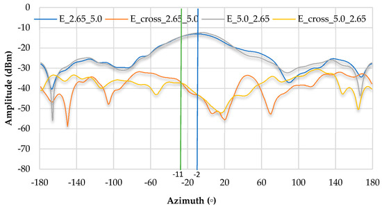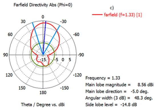 Inspecting the results, it was possible to verify that the variation range of the main lobe was between −11° and −2°.