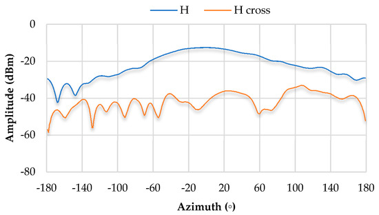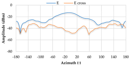 Analyzing the radiation diagram, it was possible to verify that the radiation lobe of the P-ESPAR antenna was displaced −6° in relation to the expected azimuth. This variation corresponds to the side on which the power cables were placed, so they could be responsible for this small deviation.