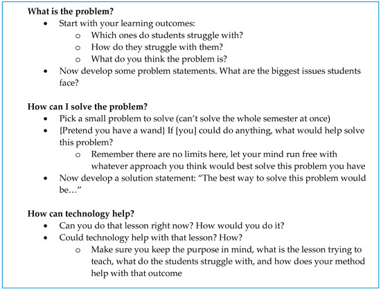 Data Supporting “How can I solve the problem?” step of the Pedagogy before Technology model, as per Figure 3.