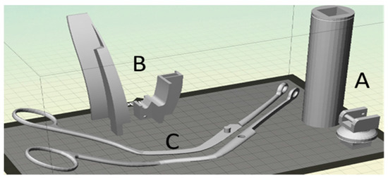 Three-dimensional models for printing representing the (A) laryngoscope, (B) Macintosh blade (size 4), and (C) Magill forceps [12].