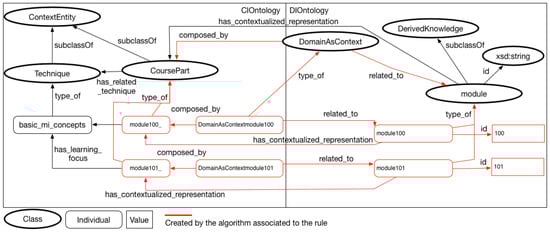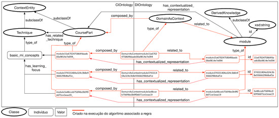 | QC4, QC5 | Query 2 | Context of Interest (b) | Only the course modules that present the basic structure of the course (overview and discussion) or that are associated with the generic learning of MI techniques were returned in the query. |