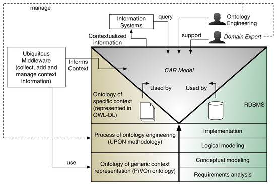 Maran V, Medeiros Machado G, Machado A, Augustin I, Palazzo M. de Oliveira J. UPCaD: A Methodology of Integration Between Ontology-Based Context-Awareness Modeling and Relational Domain Data. Information. 2018; 9(2):30. https://doi.org/10.3390/info9020030