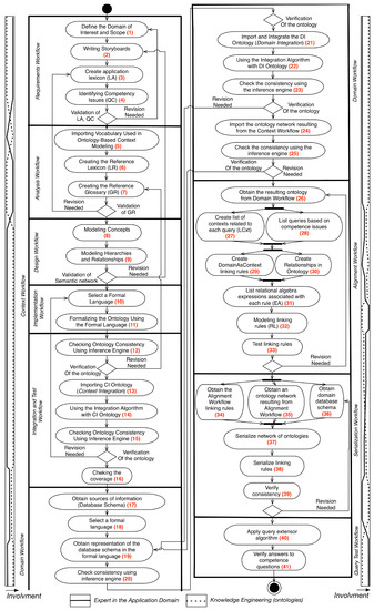 - Import the ontology network resulting from the Context Workflow: The ontology network generated in the Context Workflow is imported and integrated in the ontology network generated in the Domain Workflow;