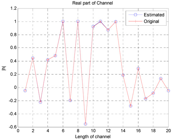 - Amplitude estimation of channel tips is used to evaluate the estimation accuracy. Root mean square error (RMSE) is provided to evaluate the estimation performance over multipath fading channels. Conventional preamble based channel estimation methods are utilized as a benchmark for simulation comparisons.