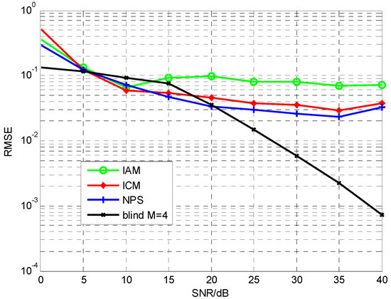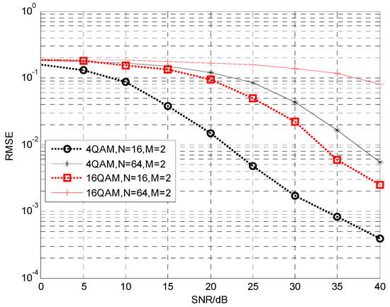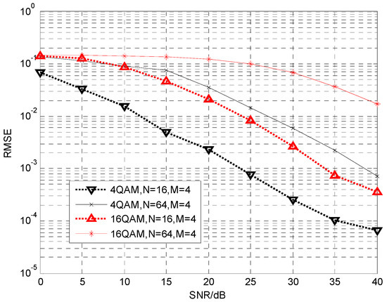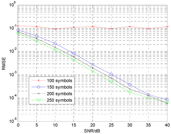 - The accuracy of the analytical results is verified by numerical simulations under different conditions. The different conditions include different numbers of receiver diversity, different modulation modes, and different numbers of FBMC/OQAM receiving symbols. Simulation results show that the proposed blind channel estimation method has a better performance than the conventional preamble based scheme at higher SNRs.