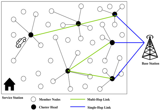 A WRSN with a wireless charging vehicle deployed over single-hop and multi-hop link.