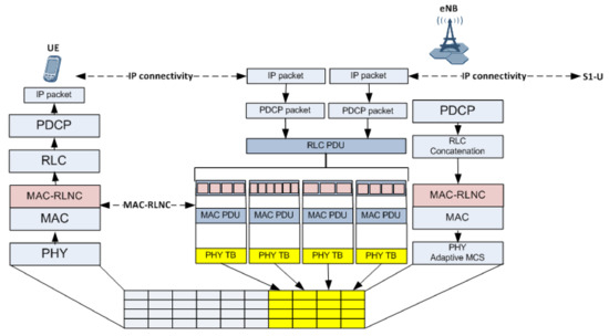 MAC-RLNC sublayer as part of LTE RAN protocol stack.