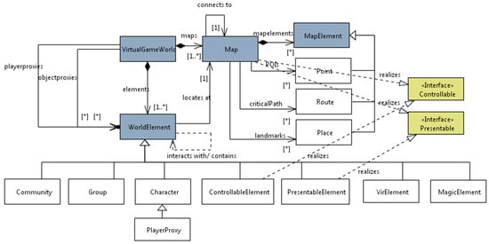 - While Gameplay and AI depict dynamic characteristics of a game, GameWorldElement describes the static characteristics of the game. In this perspective, all concepts representing game elements like [Map], [Character], and [Element] are included.
