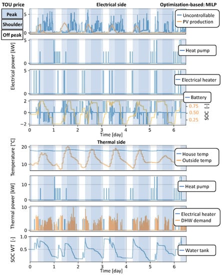 Consequently, the electrical grid should change from a consumption driven to generation driven paradigm. For this purpose, home energy management systems (HEMS) jointly optimizing electrical and thermal energy use at house level play a crucial role in integrating the flexibility of controllable electrical loads and thermal or electrical buffers.