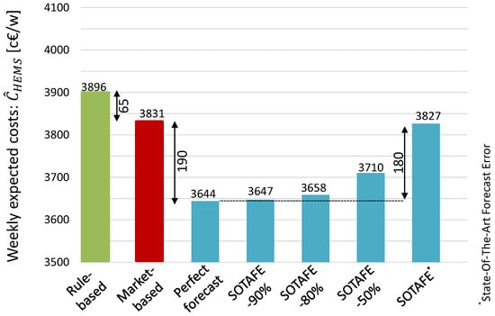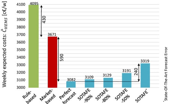 14] assess the HEMS under specific seasonal conditions and over few days with perfect forecasts, leading to conclusions that lack generality. Instead, the results presented here consider different forecast errors and a broad set of scenarios with Monte Carlo simulations to extract more general conclusions than in the literature, i.e., independent of the user behavior and the weather conditions.