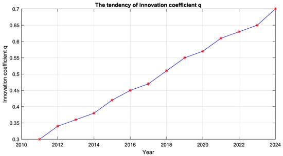 In the equation, is the cumulative amount of consumption until time T. is the cumulative amount of consumption until time T − 1. m is the maximum potential in the market. p is the coefficient of innovation, which represents the number of people who buy products affected by other consumers. q is the coefficient of imitation, which represents the number of people who buy products affected by the Internet and others’ decisions.