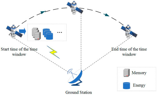 Therefore, the autonomous task planning problem of small satellites can be described as follows: A set of tasks need to be accomplished by small satellites, but the small satellites are limited in their computing capabilities and on-board resources. The task planning can efficiently accomplish the observation task and the data-downloading tasks without intervention of the ground. In this way, the satellite can not only respond quickly to task demands, but can also perform as many tasks as possible, providing maximum observation profits.